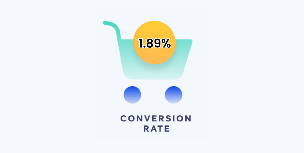 The all-industry average eCommerce conversion rate sits at approximately 1.89%.